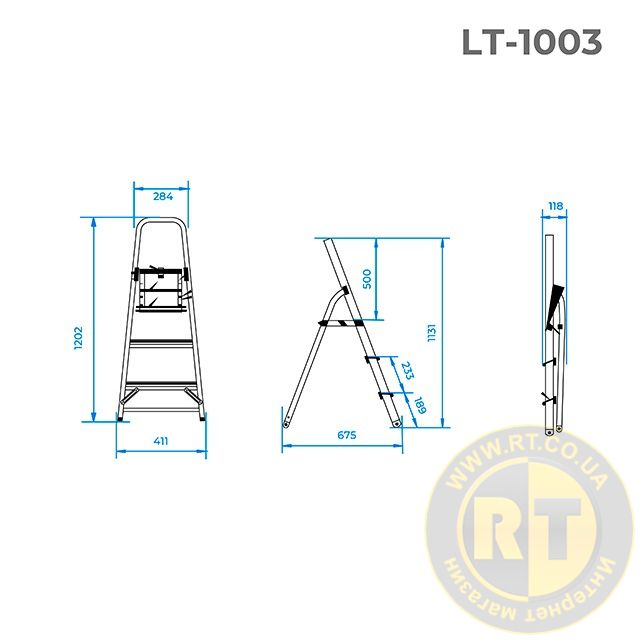 Драбина алюмінієва, 3 сходинки, висота: 1130 мм, висота до платформи: 630 мм, 150 кг INTERTOOL LT-1003