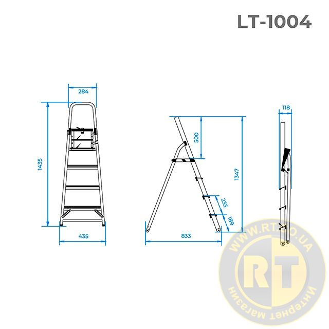 Драбина алюмінієва, 4 сходинки, висота: 1350 мм, висота до платформи: 850 мм, 150 кг INTERTOOL LT-1004