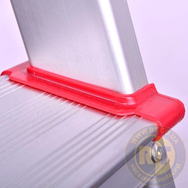 Сходи спроектовані з достатньою шириною між ніжками, тому вони дуже стійкі та не гойдаються під час роботи. Ніжки оснащені спеціальними протиковзними рифленими черевиками, що також захищають покриття від подряпин та пошкоджень. На стрем’янці зручно стояти та працювати завдяки верхній широкій платформі та сходинкам з рифленими поверхнями, а також поручню безпеки, за який можна триматися.
