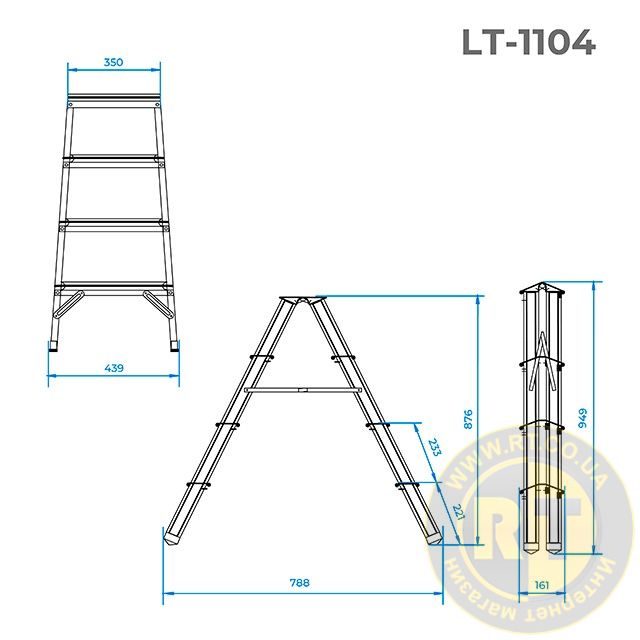 Драбина алюмінієва двостороння 4 сходинки, висота 880мм INTERTOOL LT-1104