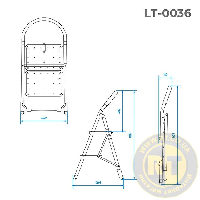 Драбина сталева, 2 сходинки, 350×220 мм, висота: 890 мм, висота до платформи: 486 мм INTERTOOL LT-0036