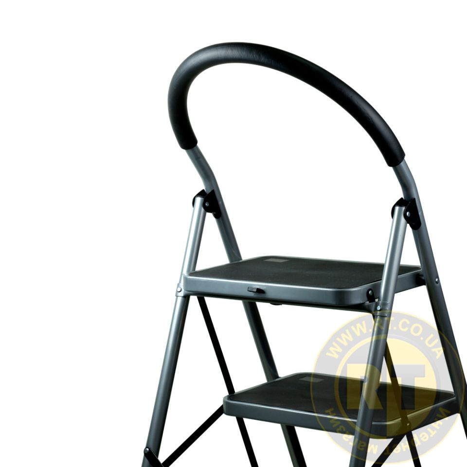 - Широкі сталеві сходи покриті пластиковим покриттям, що не ковзає.