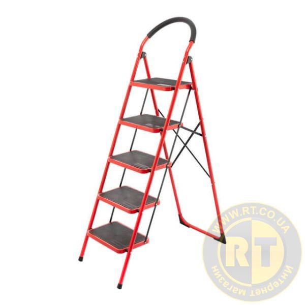 Драбина сталева, 5 сходинок, 380×260 мм, висота: 1617 мм, висота до платформи: 1215 мм INTERTOOL LT-0039