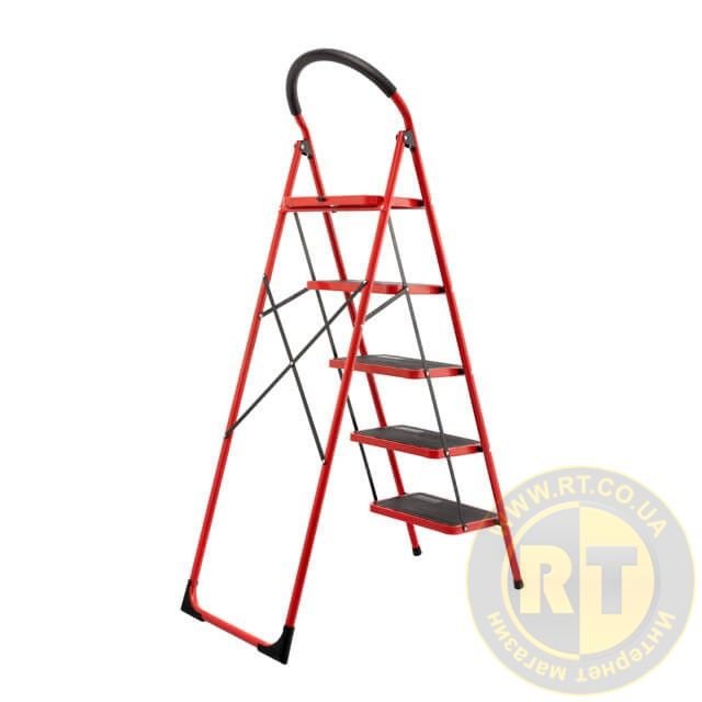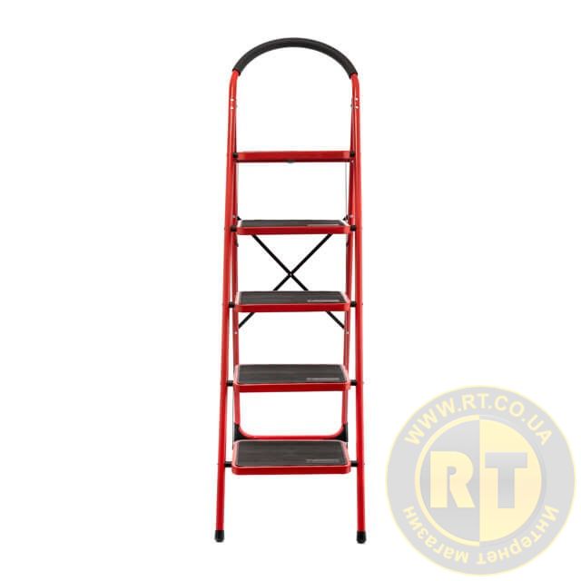 Драбина сталева, 5 сходинок, 380×260 мм, висота: 1617 мм, висота до платформи: 1215 мм INTERTOOL LT-0039