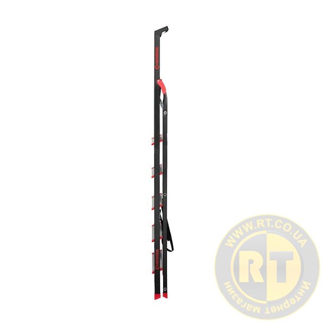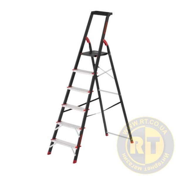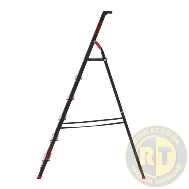 Стрем'янка виготовлена з міцного сталевого профілю з алюмінієвими сходинами. Рифлені сходинки не дозволять ковзати нозі та гарантують безпечний підйом, а також зручне положення під час роботи. Стрем'янка відповідає європейському стандарту EN 131 і витримує навантаження до 150 кг.