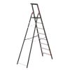 Драбина визготовлена з міцного сталевого профілю з алюмінієвими сходинками. Рифлені сходинки не дадуть зісковзнути нозі і гарантують безпечний підйом, а також зручне положення під час роботи. Драбина відповідає європейському стандарту EN131 і витримує навантаження до 150 кг.