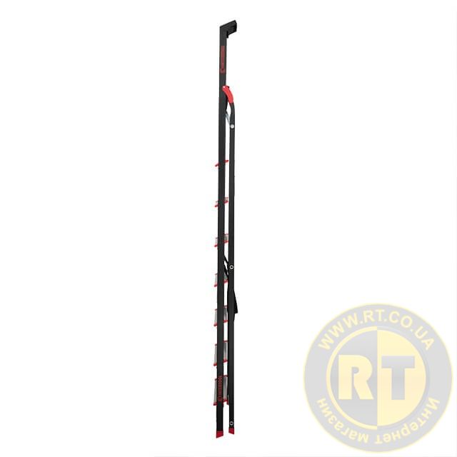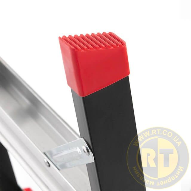Міцно зчеплюются з будь-якими поверхнями підлоги і не пошокоджують підлогові покриття. Драбина стоїть стійко і ви можете не боятися впасти. Надійні захищені з'єднання сходинок і профілю, поручні, стяжні профілі і ремені роблять конструкцію драбини стійкою і безпечною.