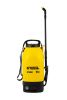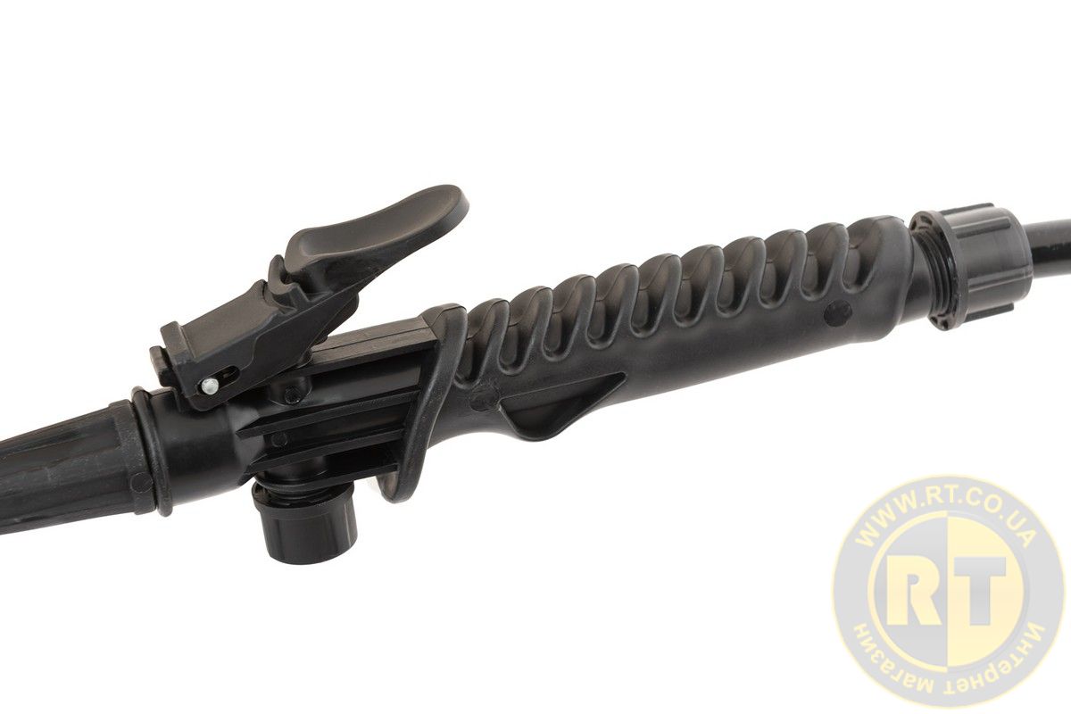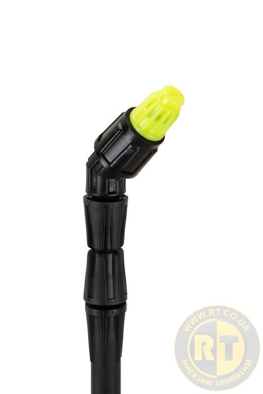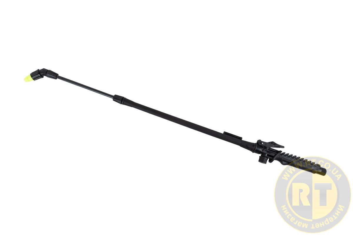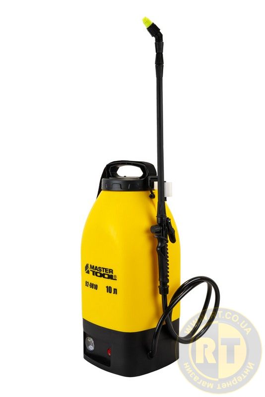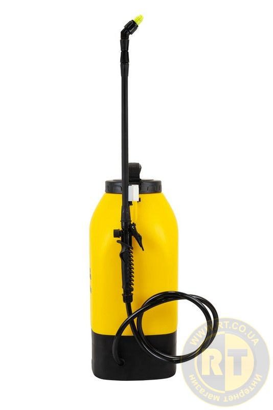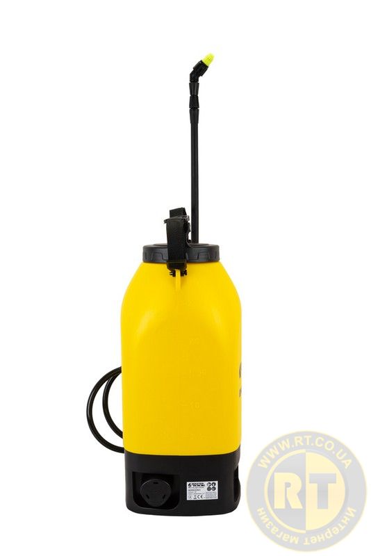 Бак об'ємом 10 літрів виготовлений із хімічно стійкого пластику, що витримує вплив агресивних рідин. Обприскувач має зручну телескопічну штангу, гнучкий шланг, ергономічну ручку з кнопкою подачі рідини та регульоване сопло для зміни типу розпилення.