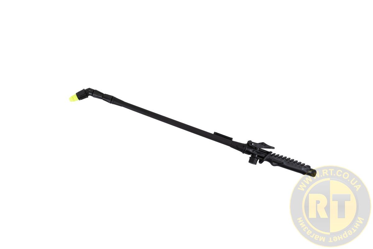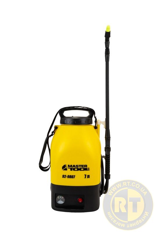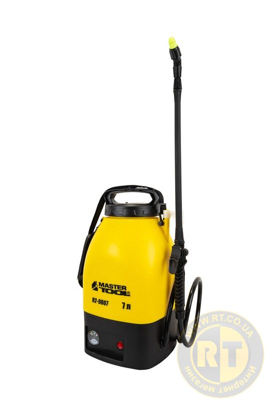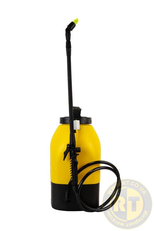 Бак об'ємом 7 літрів виготовлений із міцного, хімічно стійкого пластику. Обприскувач оснащений гнучким шлангом, зручною ручкою з кнопкою управління, телескопічною штангою та регульованим соплом для різних режимів розпилення. Завдяки невеликій вазі та компактним розмірам, обприскувач ідеально підходить для точкової обробки рослин або невеликих ділянок.