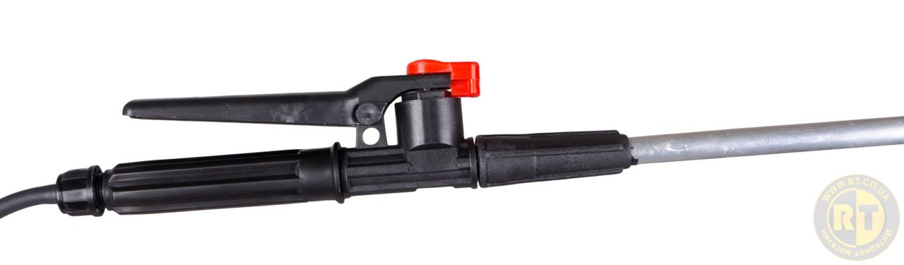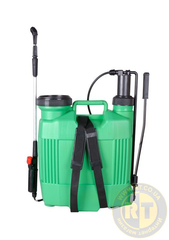 Обприскувач оснащений ефективною помпою для створення стабільного тиску, гнучким шлангом, телескопічною штангою з форсункою та регульованим соплом для різних режимів розпилення. Міцний пластиковий корпус стійкий до дії хімічних речовин. Ідеально підходить для обробки рослин засобами захисту, внесення добрив, поливу чи дезінфекції. • збільшений об'єм 15 л – підходить для тривалих робіт на великих ділянках