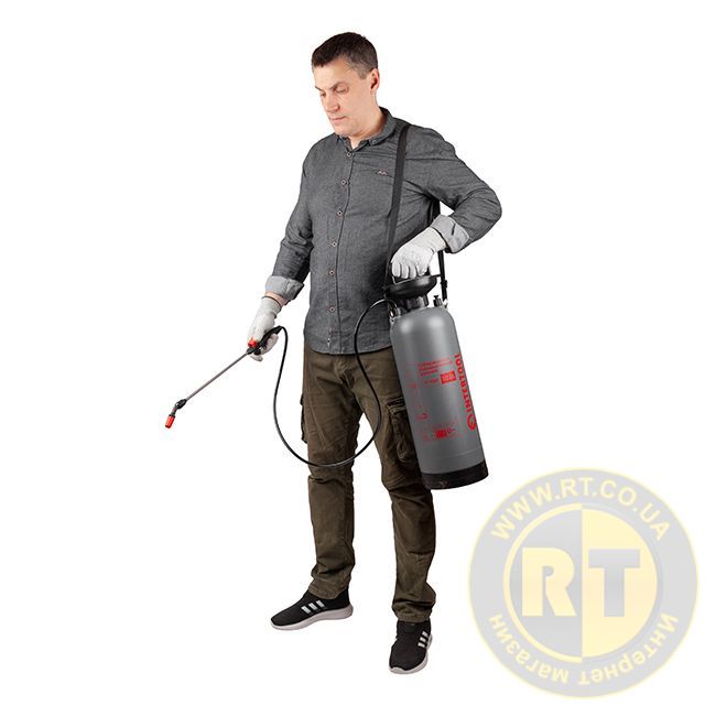 Оприскувач класичного типу дії: працює завдяки накачуванню повітря в резервуар. Бачок із позначками дозволяє точно залити необхідну кількість розчину. Ремінь з регулюванням для вибору оптимальної довжини. Налаштування факела розпилення для зручного та ефективного зрошування.