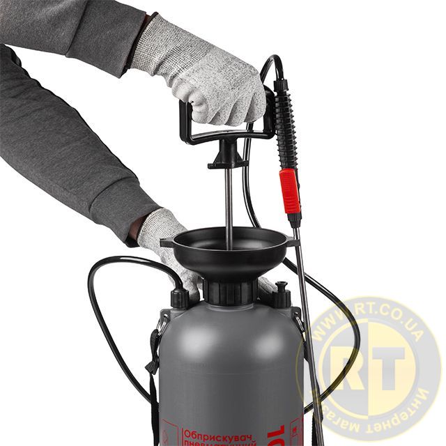 Оприскувач ручний пневматичний використовується у садах, на городах, дачах і в сільському господарстві. Завдяки баку об'ємом 10 літрів забезпечує зручне та ефективне зрошення з додаванням добрив чи засобів від шкідників.