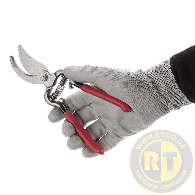 Ергономічний вигин ручок садових ножиць допомагає зменшити силу стискання, а м'який матовий матеріал гумової накладки зручніший і не ковзає в руках, на відміну від ручок із пластику.