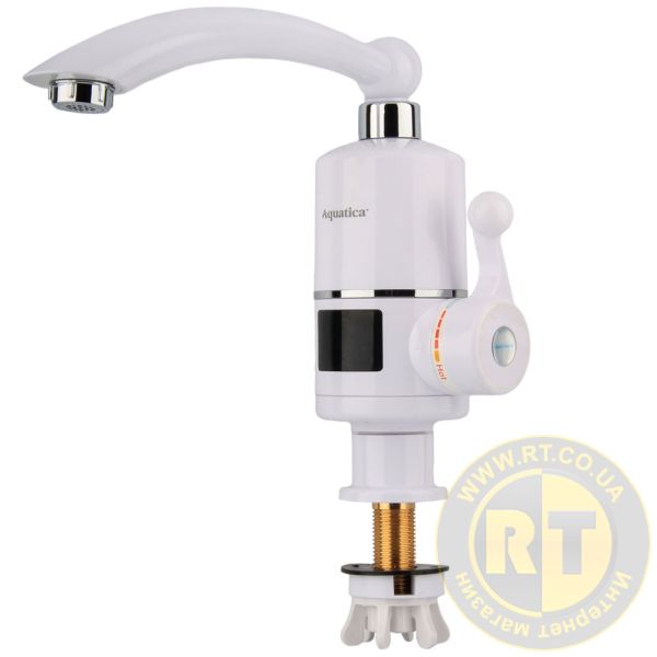 Кран-водонагрівач проточний NZ 3.0кВт 0.4-5бар для кухні гусак прямий на гайці з дисплеєм AQUATICA NZ-6B242W (9797102)