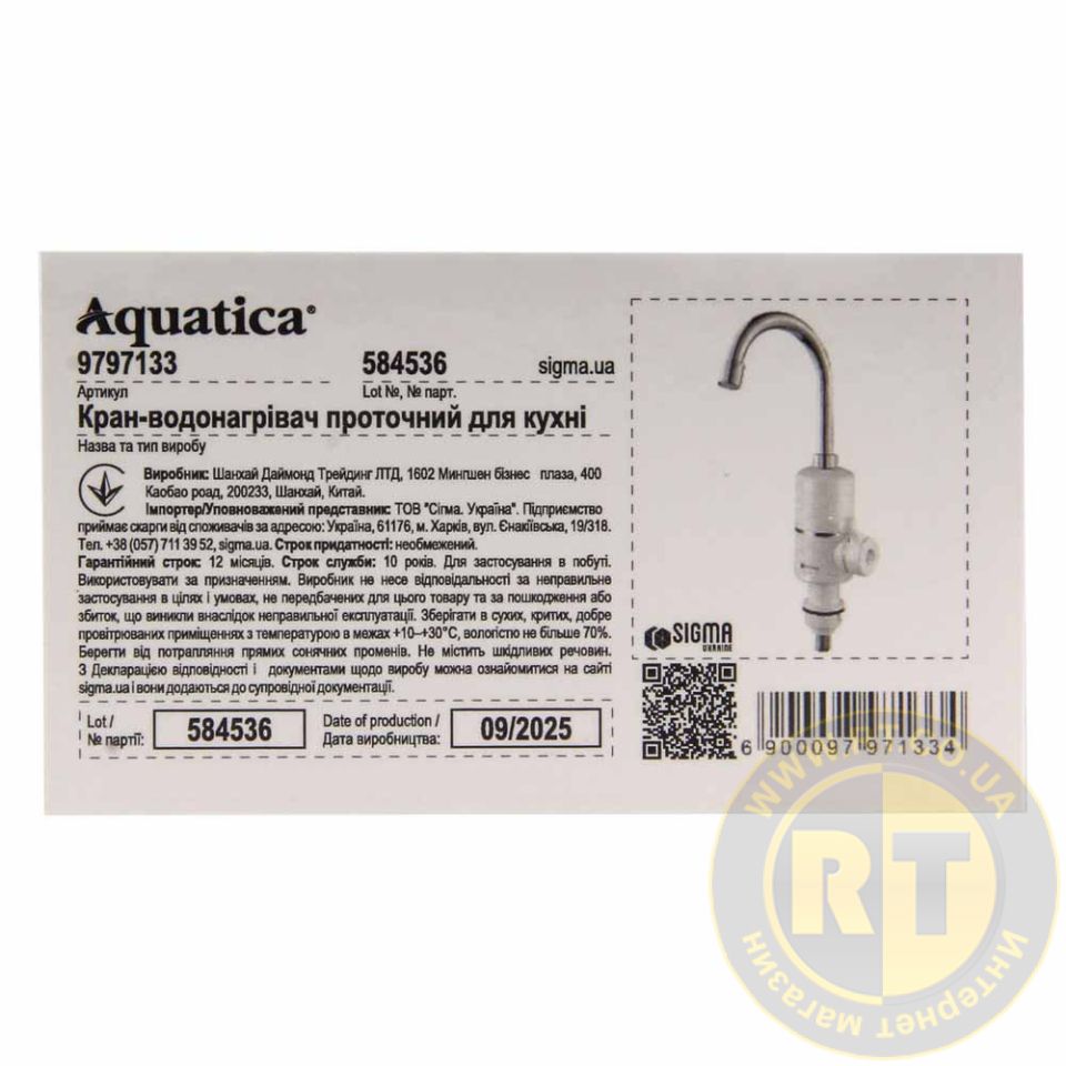 Кран-водонагрівач проточний NZ 3.0кВт 0.4-5бар для кухні гусак вухо на гайці AQUATICA NZ-6B112W 9797133