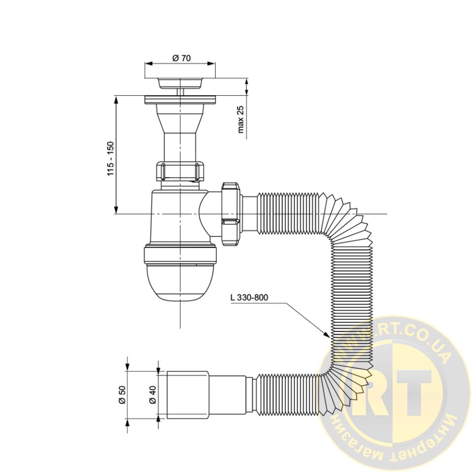 Сифон для раковини з випуском нерж. сталі та гнучким відведенням 1½"ר40/50мм TAU 9841752