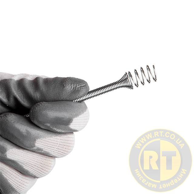 Сам трос виконаний у вигляді порожнистої спіралі, виготовлений з оцинкованої сталі, діаметром 6 мм, довжиною 4 метри. Він дуже гнучкий і при цьому міцний, легко проходить вигини каналізації з колінними переходами. Кручений загострений наконечник для кращої прохідності.