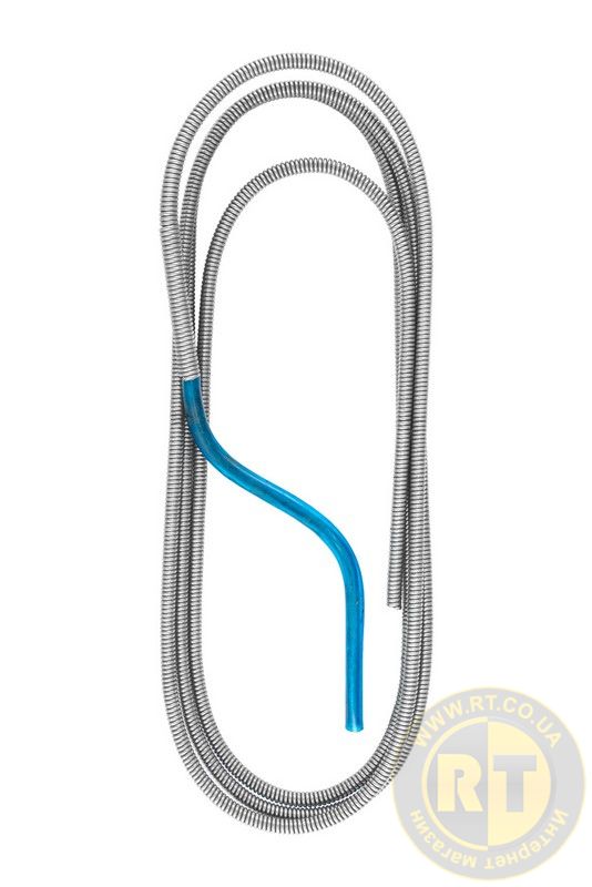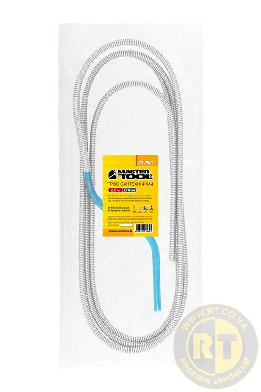 Довжина 2,5 метра дозволяє легко добиратися до важкодоступних місць у побутових трубах та сифонах. Зручна ручка забезпечує комфортне обертання троса, завдяки чому прочищення відбувається швидко та результативно.