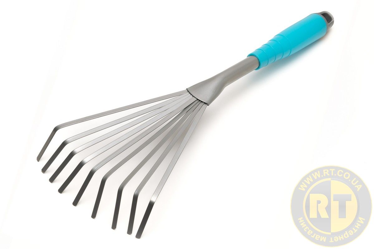 Садові віялові граблі 9 зубів 400*135 мм із пластиковою ручкою стануть вашим надійним помічником у підтримці чистоти та порядку у вашому саду. • порошкове фарбування