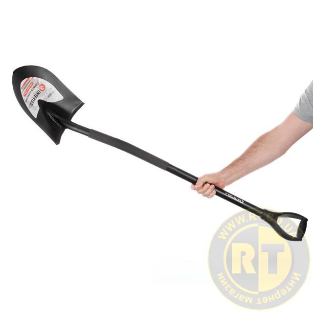Для ще більшого комфорту на держаку передбачено D-подібну ручку, яка запобігає перекосам та дозволяє зручно утримувати лопату у необхідному положенні.