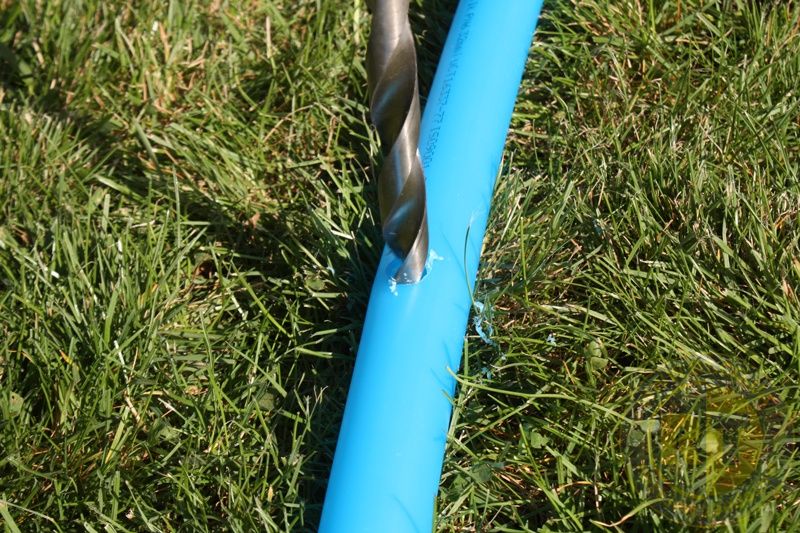 - У магістральній трубі просвердлити отвір діаметром 8-9 мм;