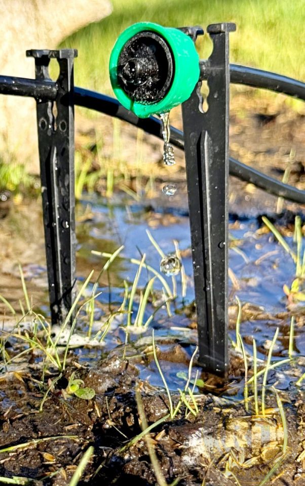 Відстань між крапельницями підбирають индивидуально з огляду на місце розташування рослин, розташовувати крапельниці необхідно максимально близько до кореня, для підвищення ефективності та економної витрати води та добрив.