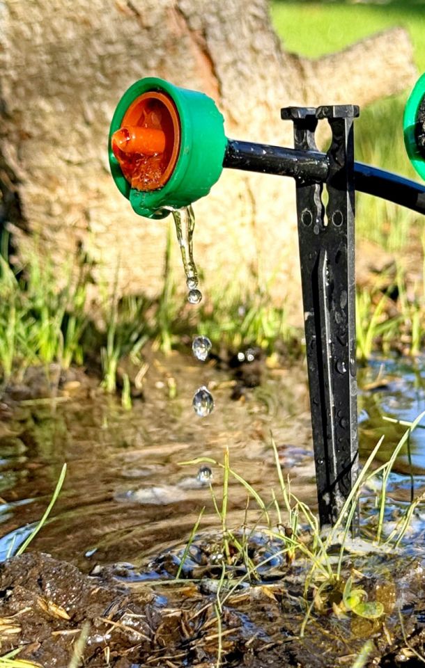 Відстань між крапельницями підбирають индивидуально з огляду на місце розташування рослин, розташовувати крапельниці необхідно максимально близько до кореня, для підвищення ефективності та економної витрати води та добрив.