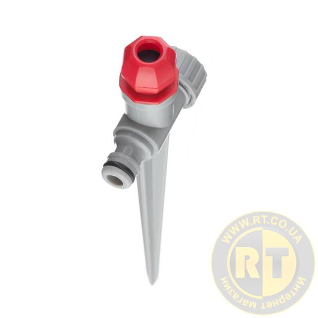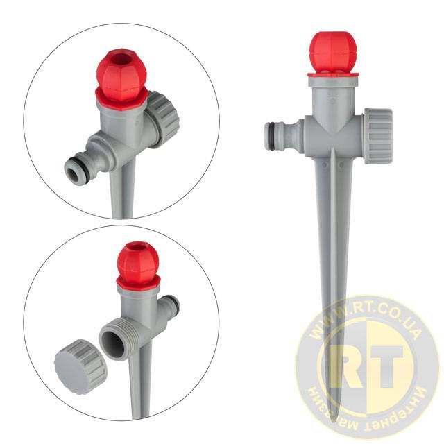 Зрошувач легко переносити з місця на місце і встановлювати стаціонарно на необхідній ділянці. Ніжка (кілок) дозволяє надійно зафіксувати дощовик у землі.