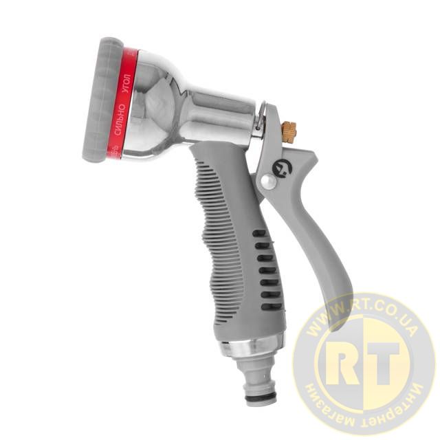 Пістолет-розпилювач для поливу, 8 режимів, хромований, матеріали: ABS, PP, TPR, Zinc alloy INTERTOOL GE-0004