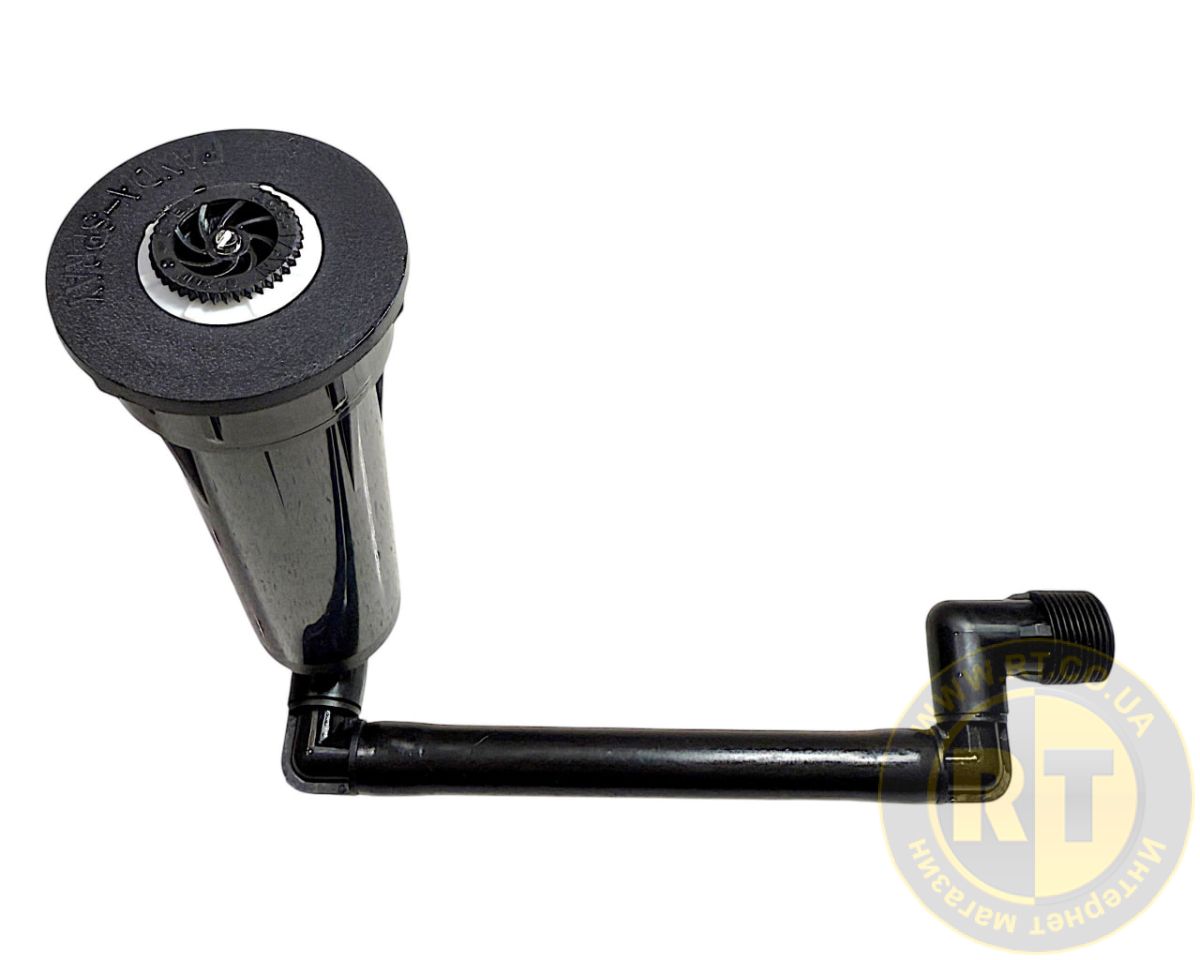 - У нього вкрутити коліно і відрегулювати його до потрібної висоти, щоб зрошувач був повністю втоплений у землю;