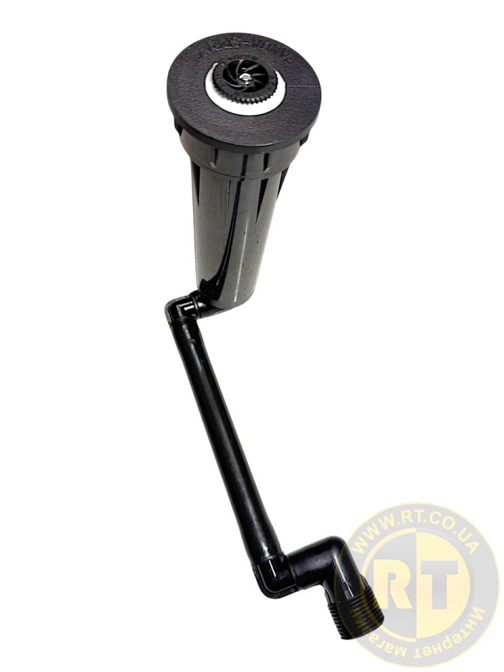 - У нього вкрутити коліно і відрегулювати його до потрібної висоти, щоб зрошувач був повністю втоплений у землю;