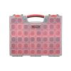 Органайзер виготовлений з міцного, товстого пластику. Два замки надійно притискають кришку та не дають пересипатися навіть невеликим деталям.