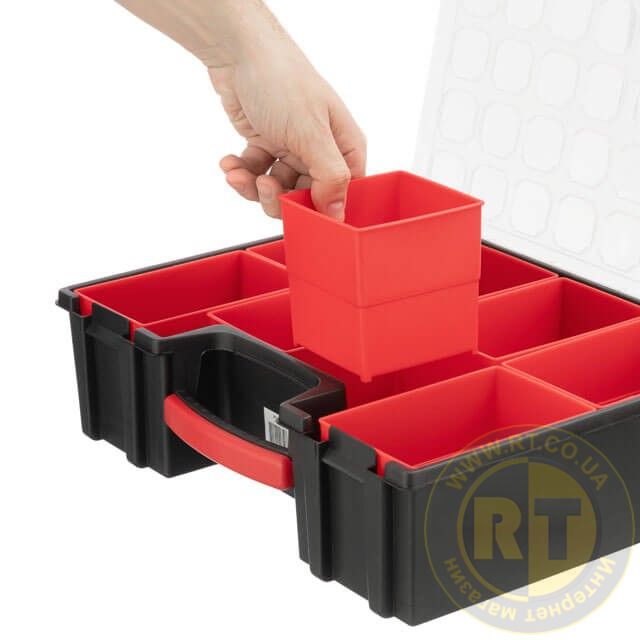 В цей органайзер можна покласти інструмент, довжиною до 410 мм, шириною до 330 мм, завдяки лоткам, які виймаються.