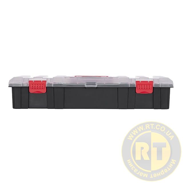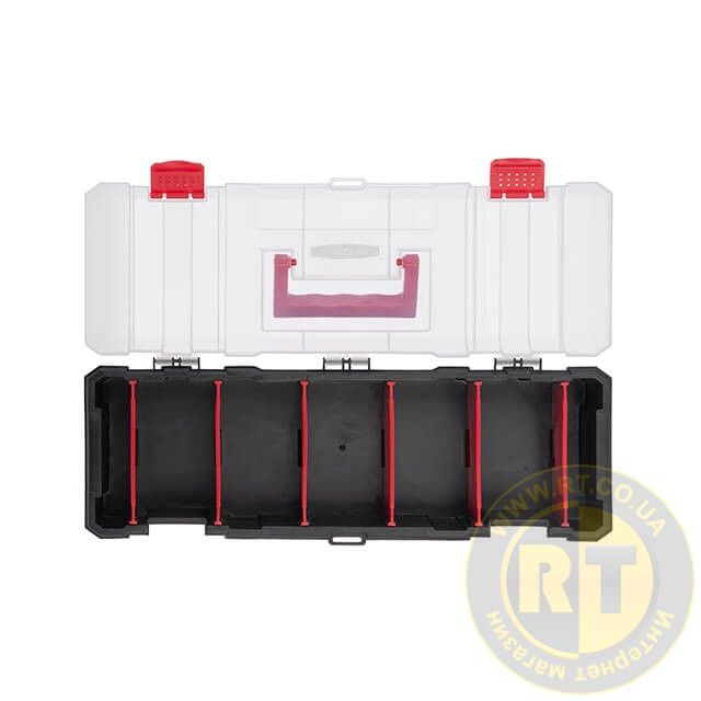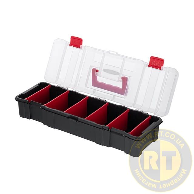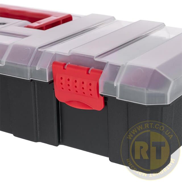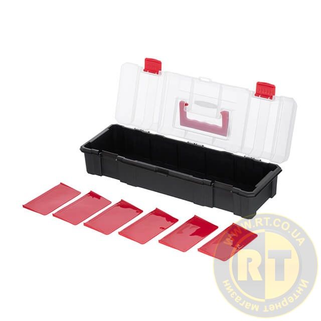 Кришка виготовлена з міцного поліпропілену і стійка до сколів. Прозорість кришки допомагає швидко знаходити необхідні предмети. Органайзер має зручну ручку для транспортування.