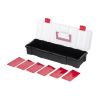 До того ж перегородки виймаються, що дозволяє організувати місце для зберігання довільного розміру на ваш розсуд, чи ж повністю прибрати всі перегородки і отримати порожній органайзер для більш габаритного інструменту.