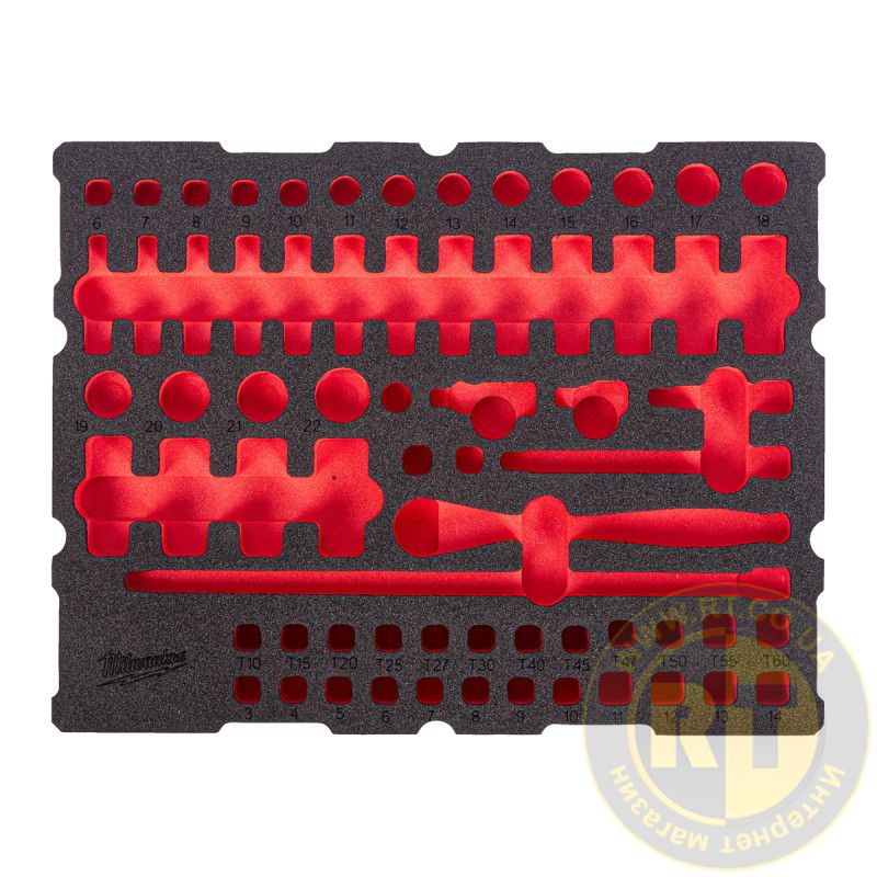 Ложемент для ящиків з полицями PACKOUT MILWAUKEE для головок хромованих і тріскачки 1/4'' (68шт)