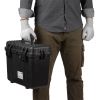 Повністю герметичний кейс надійно захищає свій вміст від води, пилу, бруду і агресивних рідин. Виступи на кришці повністю збігаються з пазами в нижній частині чемодану, а неопренова прокладка герметично заповнює простір між ними.