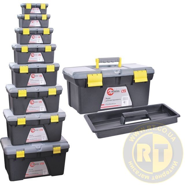 Комплект ящиків для інструментів 8 од.: BX-0310 10", BX-0312 12", BX-0314 14", BX-0316 16,5", BX-0318 18,5", BX-0321 21", BX-0323 23,5", BX-0326 26,5" INTERTOOL BX-0308