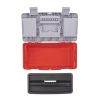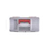 На кришці ящика розташовані два органайзери, які відмінно підходять для зберігання кріплень або будь-яких інших витратних матеріалів. Також зверху передбачений відсік для біт, який закривається прозорою кришкою. Усередині ящика розміщена полиця для зберігання губцевого та іншого невеликого інструменту, який часто використовується.