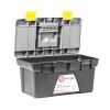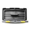 Ящик виготовлений з ударостійкого, термостійкого та зносостійкого пластику, що значно знижує ймовірність пошкодження при ударі або падінні. Геометрія корпусу має багато додаткових ребер жорсткості. Завдяки такій конструкції, ящик відмінно справляється з навантаженнями при транспортуванні, тримає форму та не деформується, навіть якщо завантажений важким інструментом. Кришку тримають посилені петлі, які оснащені металевими осями. Полиця всередині має додаткові ребра жорсткості й виконана з ударостійкого пластику.