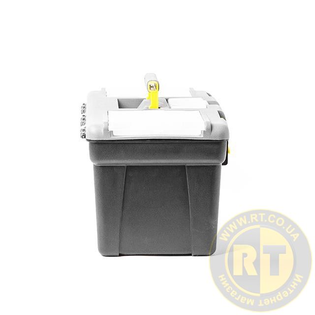 Ручка ящика прогумована та має ергономічну форму, що дозволяє зручно тримати її в руці та не вислизає під час транспортування. Вона повністю утоплюється в корпус кришки та не заважає при зберіганні ящиків.