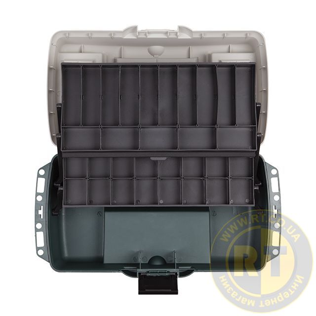 На кришці передбачені два органайзери з відсіками для дрібниць, також на дно ящика кріпиться додатковий прозорий органайзер з відсіками, який можна зняти й використовувати окремо від ящика.