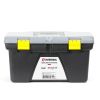 Ящик виготовлений з ударостійкого, термостійкого та зносостійкого пластику, що значно знижує ймовірність пошкодження при ударі або падінні. Геометрія корпусу має багато додаткових ребер жорсткості. Завдяки такій конструкції ящик відмінно справляється з навантаженнями при транспортуванні, тримає форму та не деформується, навіть якщо завантажений важким інструментом. Кришку тримають посилені петлі, які оснащені металевими осями. Полиця всередині має додаткові ребра жорсткості й виконана з ударостійкого пластику.