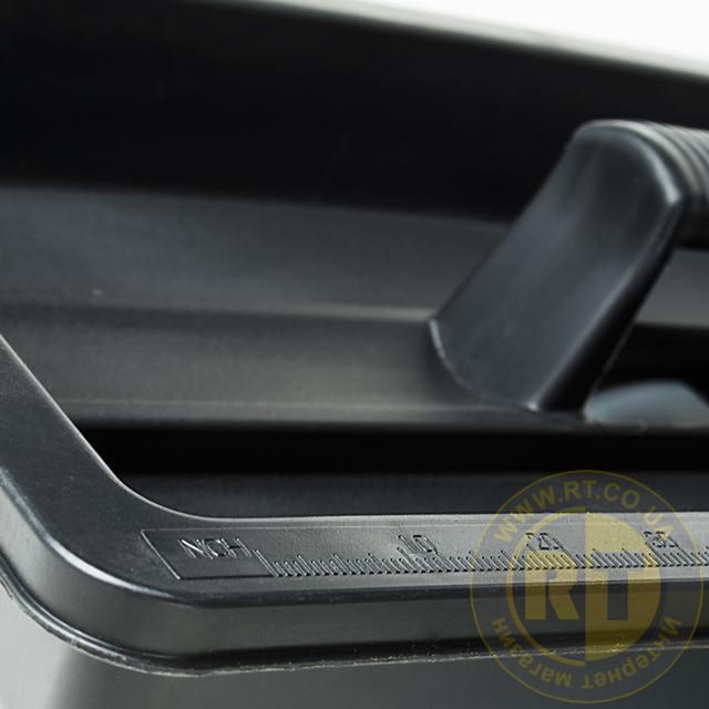 Ручка ящика прогумована та має ергономічну форму, що дозволяє зручно тримати її в руці та не вислизає під час транспортування. Вона повністю утоплюється в корпус кришки та не заважає при зберіганні ящиків.