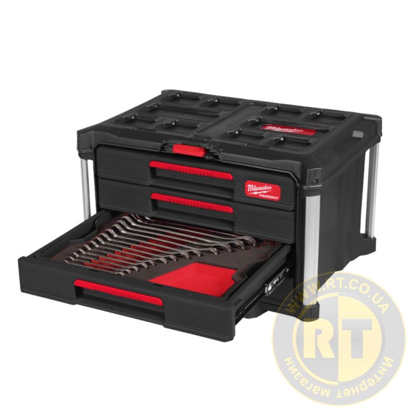 Ящик з 4-ма висувними відсіками PACKOUT MILWAUKEE та набором ручного інструменту, (244шт)