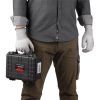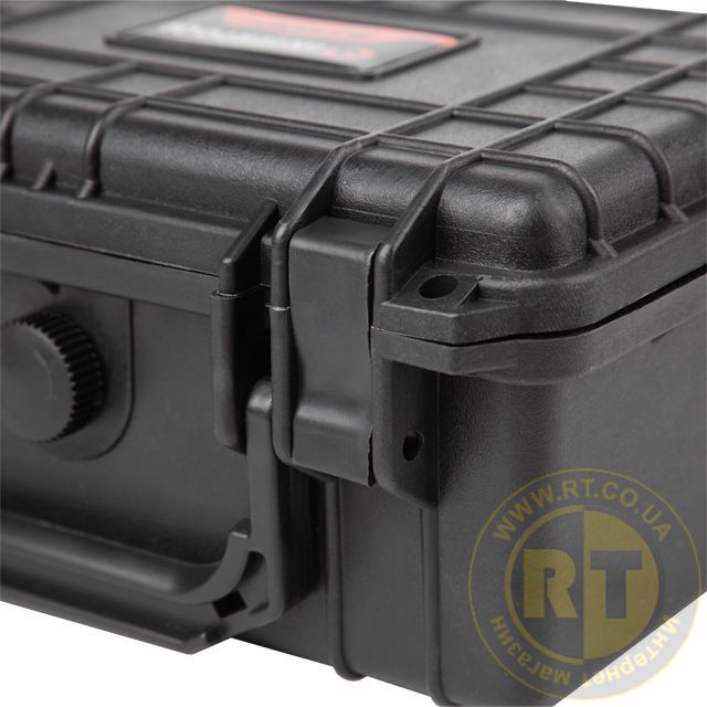 Полностью герметичный кейс надежно защищает свое содержимое от воды, пыли, грязи и агрессивных жидкостей. Выступы на крышке полностью совпадают с пазами в нижней части контейнера, а неопреновая прокладка герметично заполняет своим веществом пространство между ними.